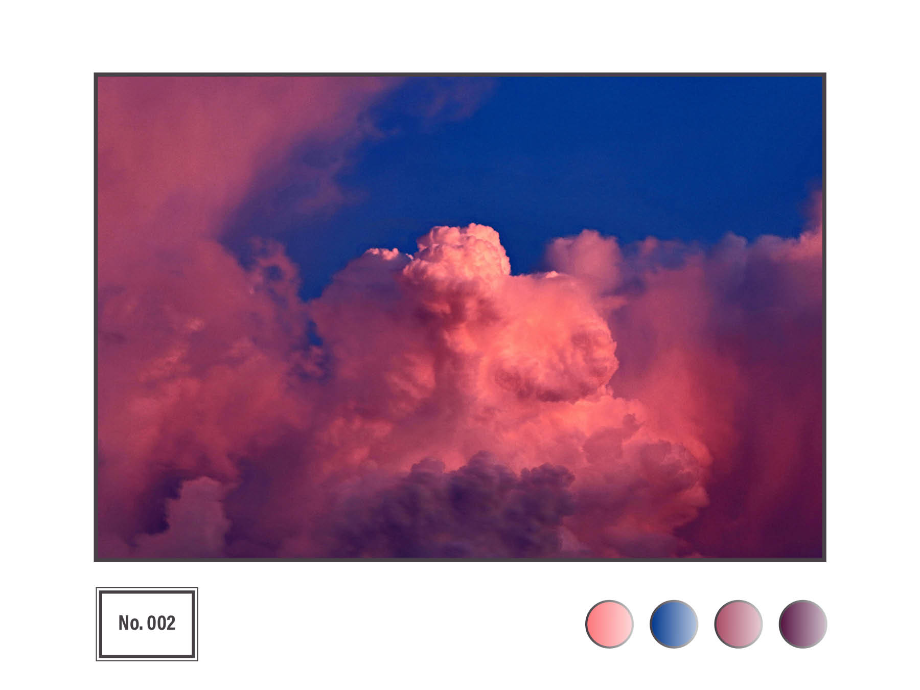 So after deciding on the main visual aspect, I then began looking for commercial-use free images to use that were striking and visually pleasing. I wanted to show the many colours of the sky and ended up creating 14 different postcards, each numbered separately on the bottom corner.